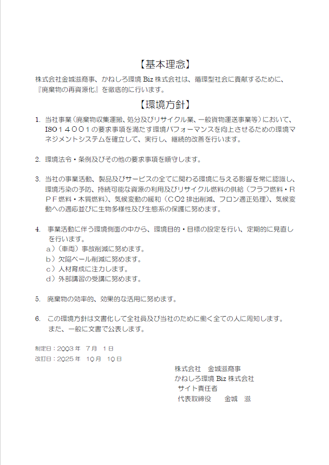 当社事業における環境方針の更新